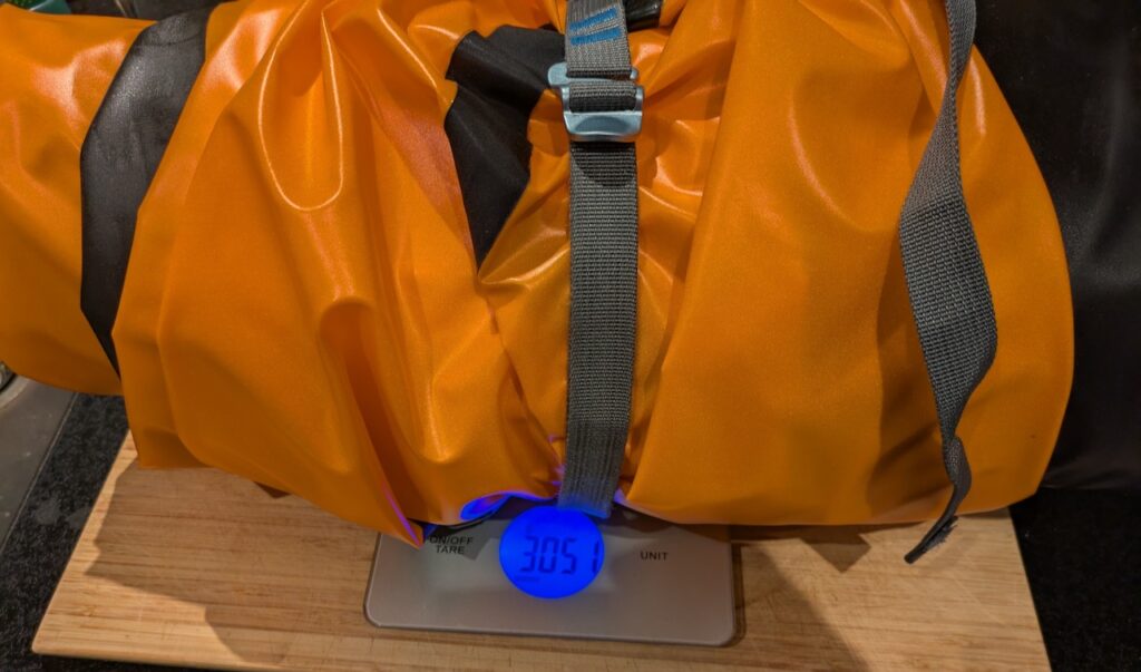 The Skeena XL’s internal cockpit is 161 cm (63 3/8″) long, 42.5 cm (16 3/4″) wide, and the tubes are 31.5 cm (12 3/8″) in diameter. That’s 15% bigger all around than the Skeena 140, which was previously the largest Skeena. The finished weight with a new wider seat and backrest is just 3051 grams, or 6.73 pounds.