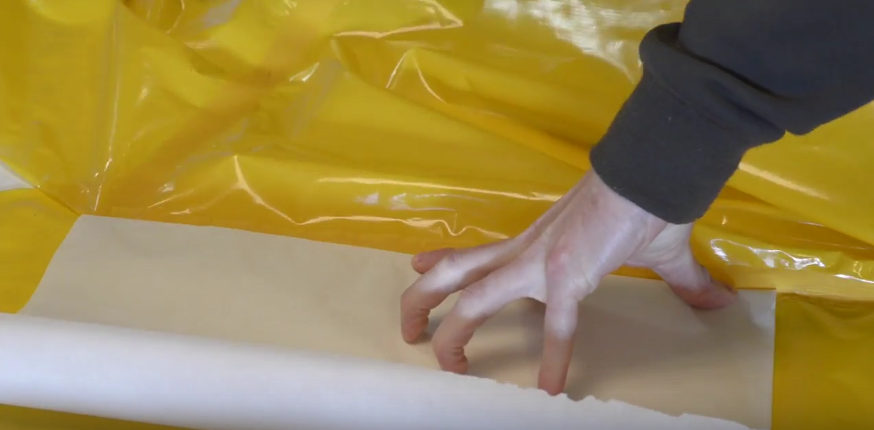 Line up your tube fabric edge with the corresponding line on the floor and bond with a seal ~1 cm wide (the width of your iron).