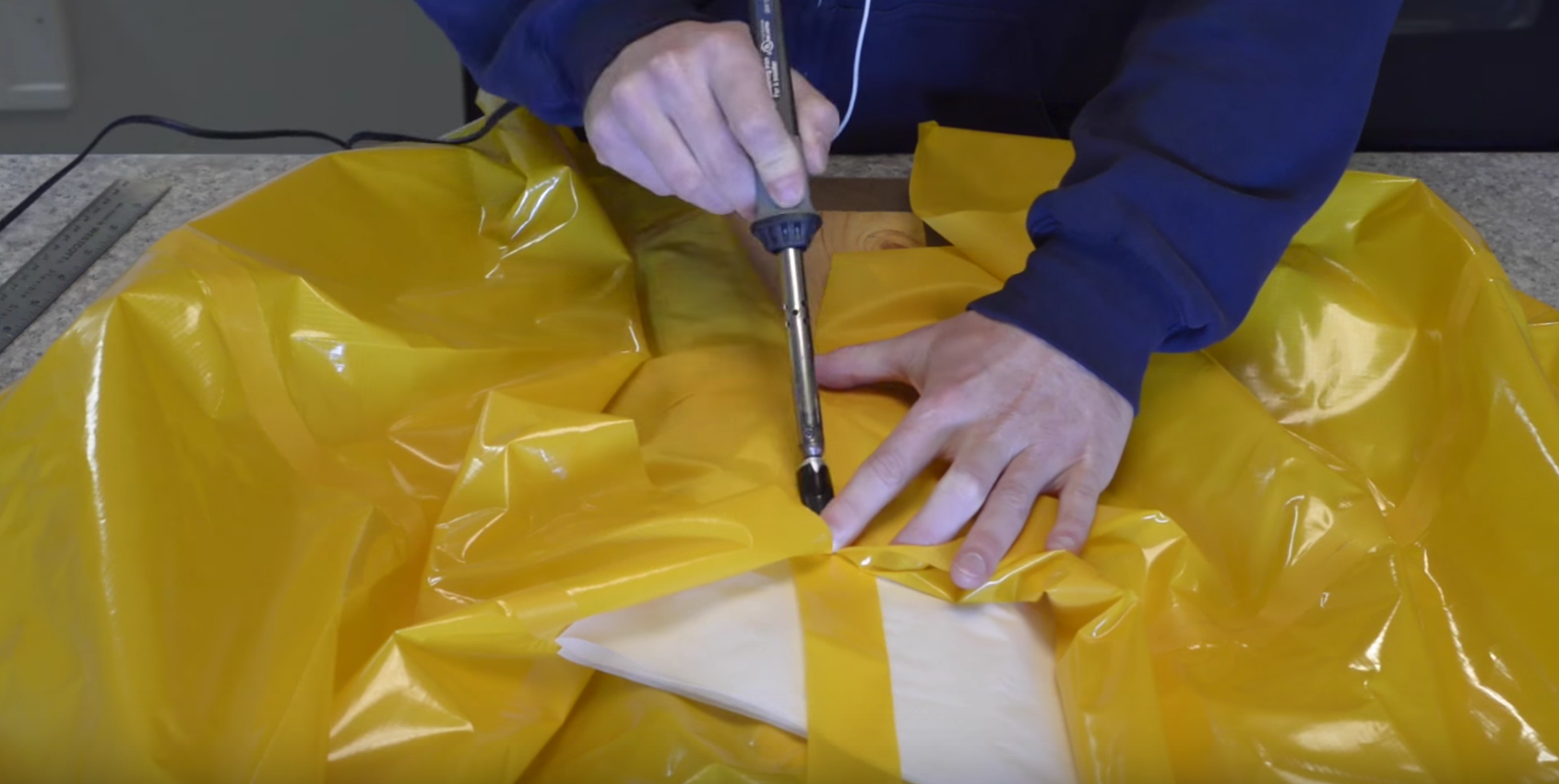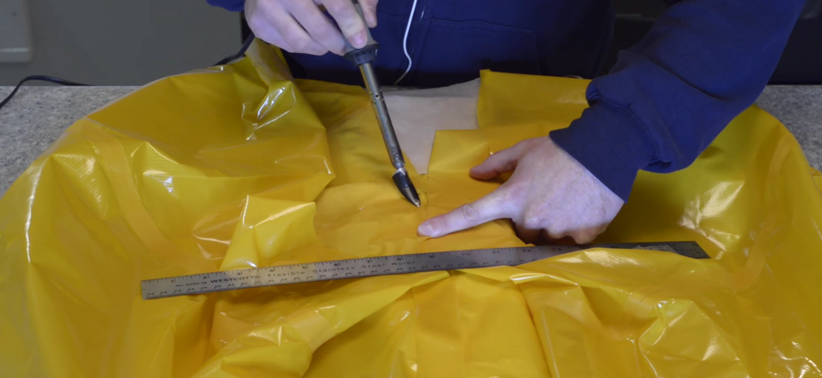 The final step in making your packraft tubes airtight is joining the front and back center seams.